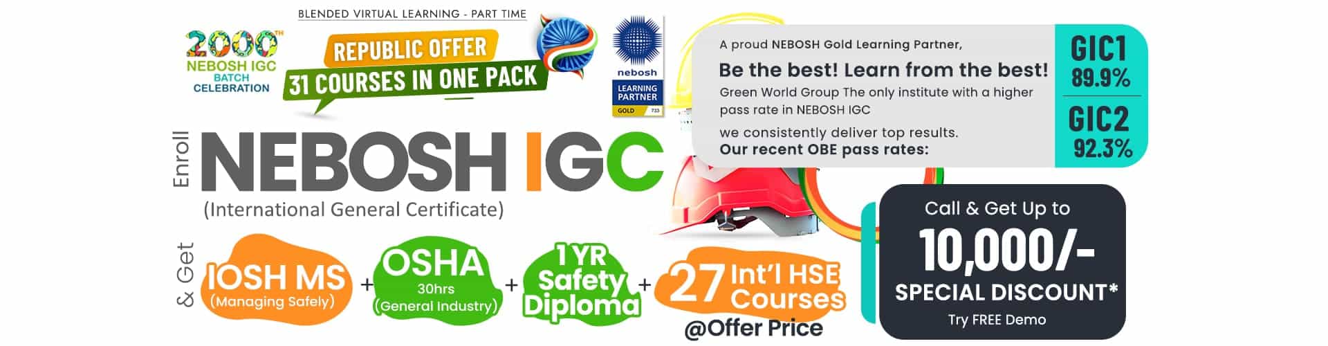 We are a NEBOSH Gold learning partner accredited to deliver NEBOSH qualifications worldwide. Green World is the leading provider of NEBOSH training with innovative, affordable, and effective learning methodologies with high quality NEBOSH training.