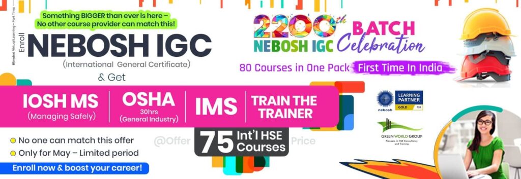 We at Green World Group Mumbai offer an impressive virtual online training session of NEBOSH Courses, led by our Experienced NEBOSH Approved Trainers who has a wealth of knowledge in this subject. Learning about occupational health and safety management with GWG is the first step to transforming into an HSE Professional.