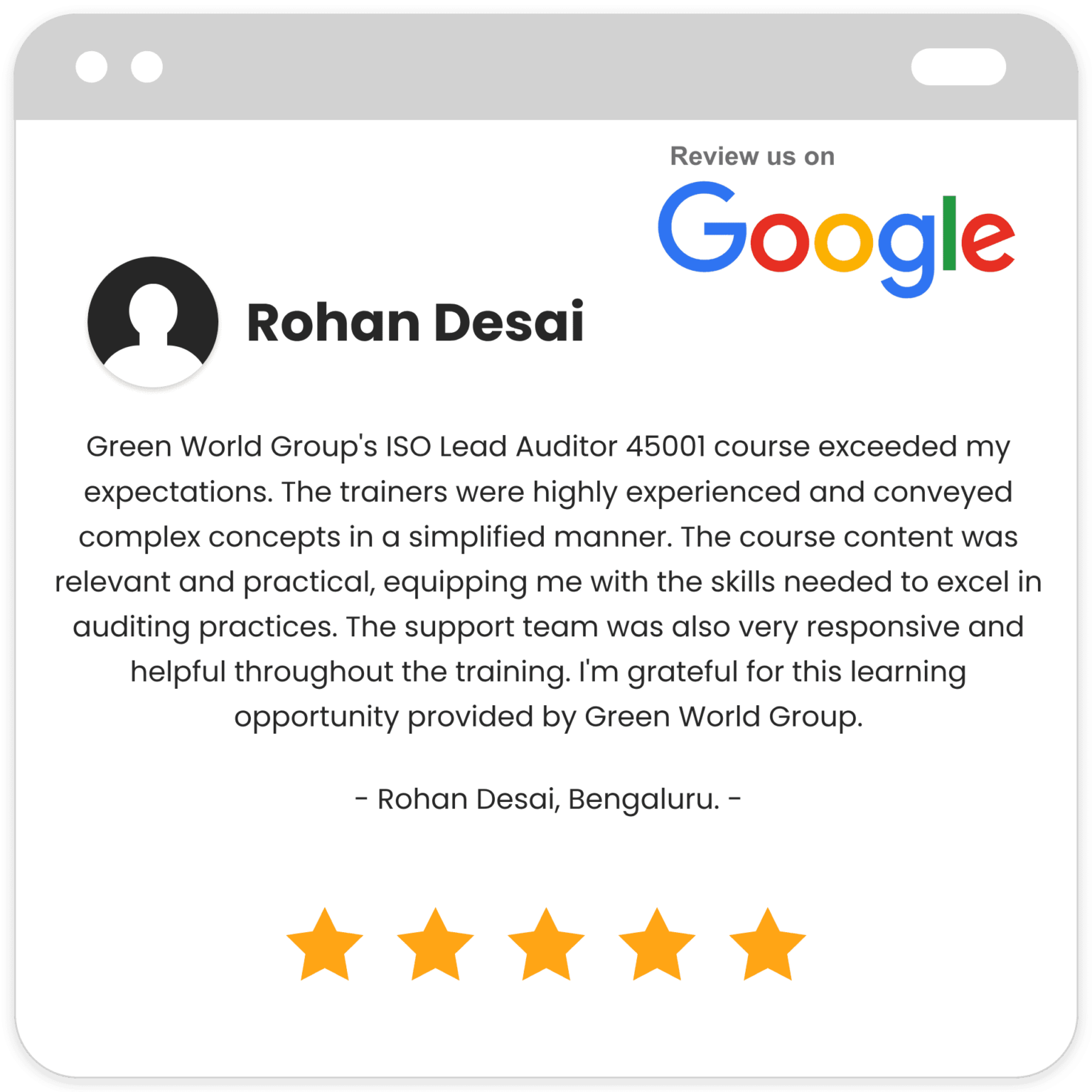 Satisfies the training needs for auditor certification as mentioned in the CQI IRCA.
