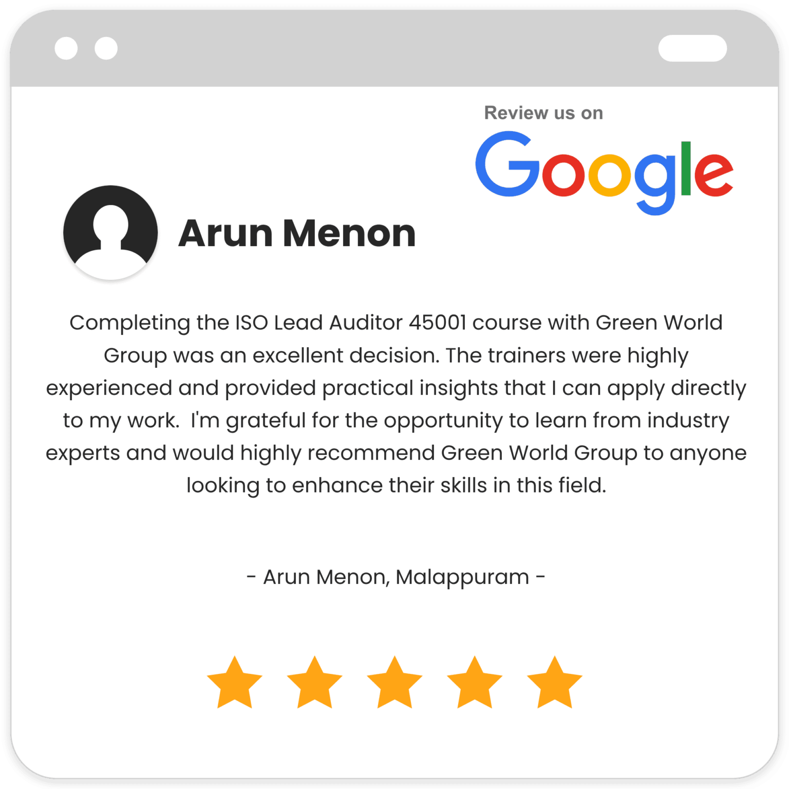 Satisfies the training needs for auditor certification as mentioned in the CQI IRCA.